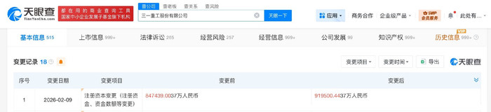 你的位置:米兰体育官方网站 - MILAN > 2026世界杯 > MILAN SPORTS 三一重工增资至91.95亿元