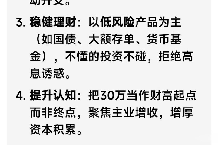 明确这笔钱的中枢价值 请记取,这30万最弱点的意旨,是为您提供扞拒东说念主生风险(如空隙、疾病)的底气和追求新契机的可能性(如学习生手段)。别让它死一火形成合并现款流的欠债。
