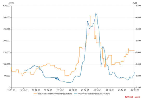 碳酸锂及氯化钾价钱走势,单元:元/吨