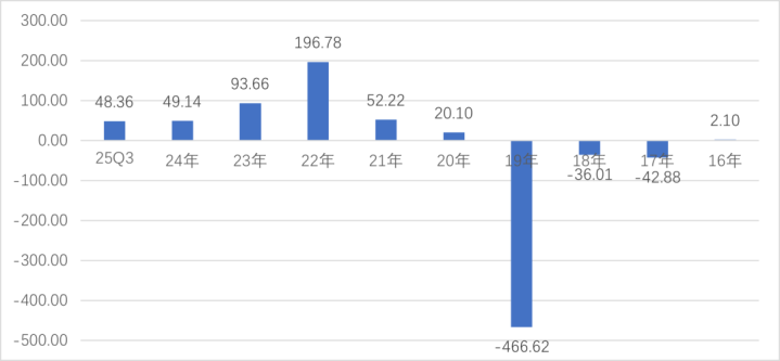 据此推算公司2025年未分拨利润-10亿操纵。2026年半年报有望转正。