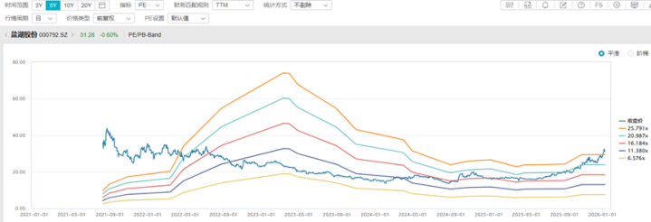 盐湖股份近5年PEband