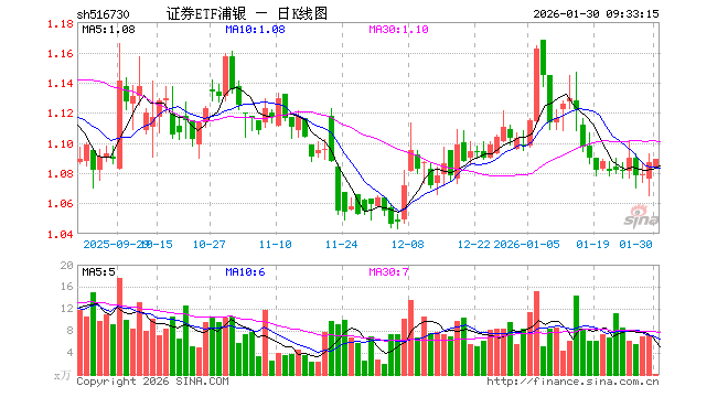 1月30日,证券ETF浦银(516730)开盘跌0.28%,报1.084元。证券ETF浦银(516730)重仓股方面,中信证券开盘跌0.21%,东方金钱跌0.17%,国泰海通涨0.00%,华泰证券跌0.39%,广发证券跌0.39%,招商证券跌0.41%,米兰体育官网东方证券跌0.38%,兴业证券跌0.85%,申万宏源跌0.58%,中金公司跌0.49%。