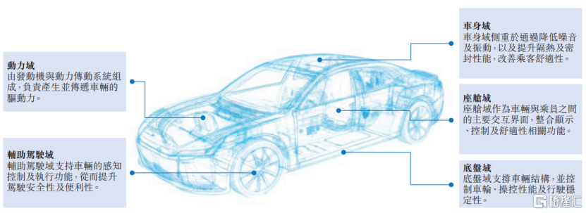 其中,减震系统主要期骗于能源及底盘域,用于管制车辆启动进程中产生的振动及噪声;内饰功能件主要业绩于车身及座舱域;底盘系统期骗于底盘域,组成车辆主要承载结构及车轮贬抑结构的一部分;汽车电子居品期骗于接济驾驶域、底盘域及座舱域,支执车辆贬抑、智能功能及东说念主机交互;热管制系统主要业绩于新能源汽车的能源及车身域。