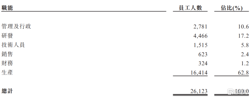 公司2025年底按职能远隔的职工东说念主数;图片起头于招股书