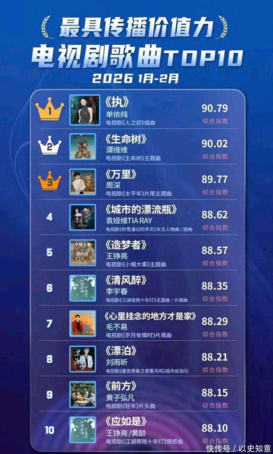 你的位置:米兰体育官方网站 - MILAN > 2026世界杯 > 米兰 电视剧歌曲TOP10:单依纯影响力进一步普及,周深成为前三守门员