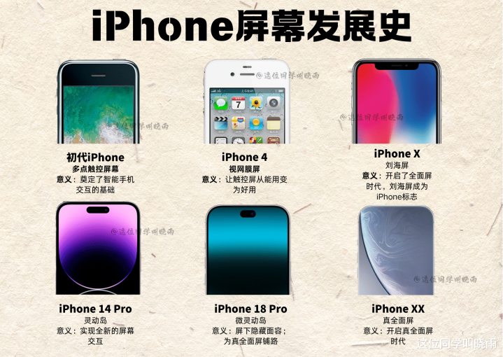 2017年,iPhone 8系列发布后,库克同步推出了苹果另一款划时间新机——iPhone X。这款手机取消了沿用10年的圆形Home键,用Face ID替代Touch ID,取舍“刘海屏+双面玻璃+金属中框”的想象,这是iPhone史上第三次想象大改,亦然iPhone再次改变手机形态的立异。iPhone X发布后,各大手机厂商争相效法,推出了多款近似居品,苹果也借此奠定了在全面屏时间的教唆地位。