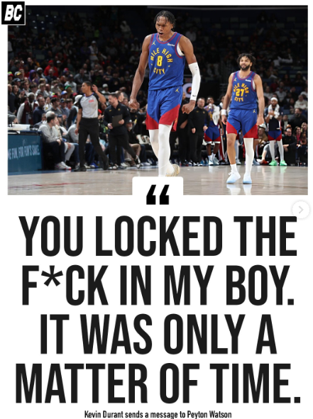 此其后,两边也如实看护了细致的筹办,当沃特森选拔在大一罢了后就进入NBA选秀时,杜兰特给他发来一条饱读励的短信。“我谨记他那时说,‘我可爱你的这份风格’,”沃特森回忆说念。而在本年1月份沃特森打出高光发达时,KD相似给以了推奖:“嘿,佩顿-沃特森,你tm透彻打疯了伯仲,这一切仅仅时刻问题。”杜兰特在他的Instagram快拍中写说念。
