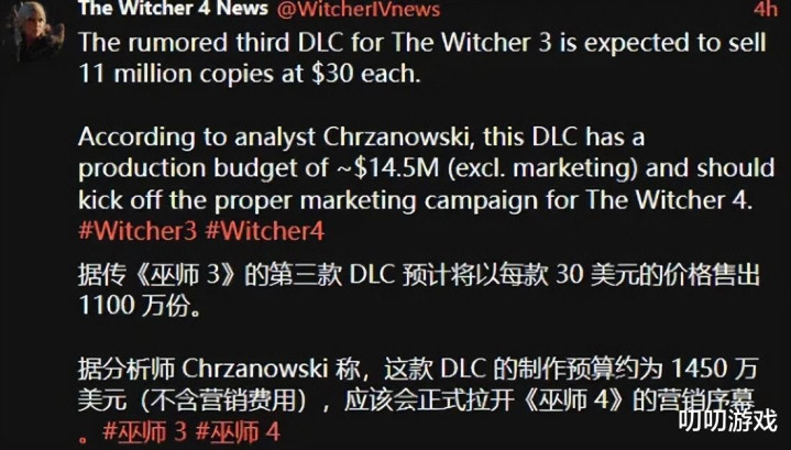 跟着贵寓片的发售,也将拉开《巫师4》的营销序幕。