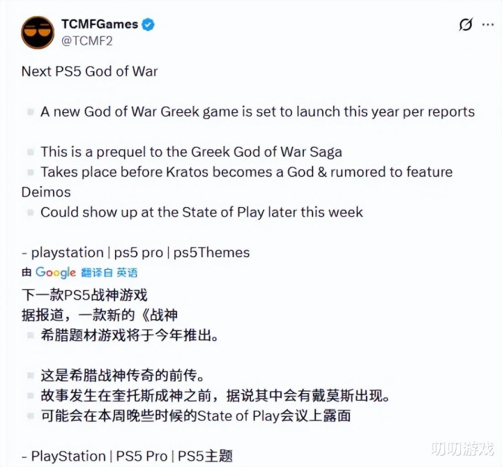 推主还暗示本作将是奎托斯年青期间的故事,布景式希腊,可能会有懦弱之神戴莫斯登场。