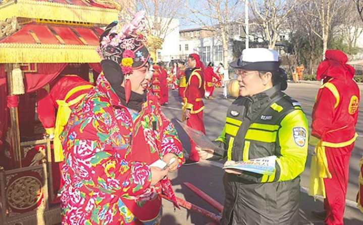 {jz:field.toptypename/}73岁的李三珍率领“姥娘送妮儿”文艺队信守传承50余载,他告诉记者,如今上演不仅要唱好乡土戏,更要当好文雅新风和法治宣传的宣传员,把法治内容、安全学问编进唱词,让大众在看戏中懂法称职。本年春节,文艺队上演排期满满,祯祥志愿者队伍也全程相伴,凤山派出所提前制定安保决议,祯祥志愿者定点值守、巡查防控,让侵略的习惯行为既喜庆又安全。