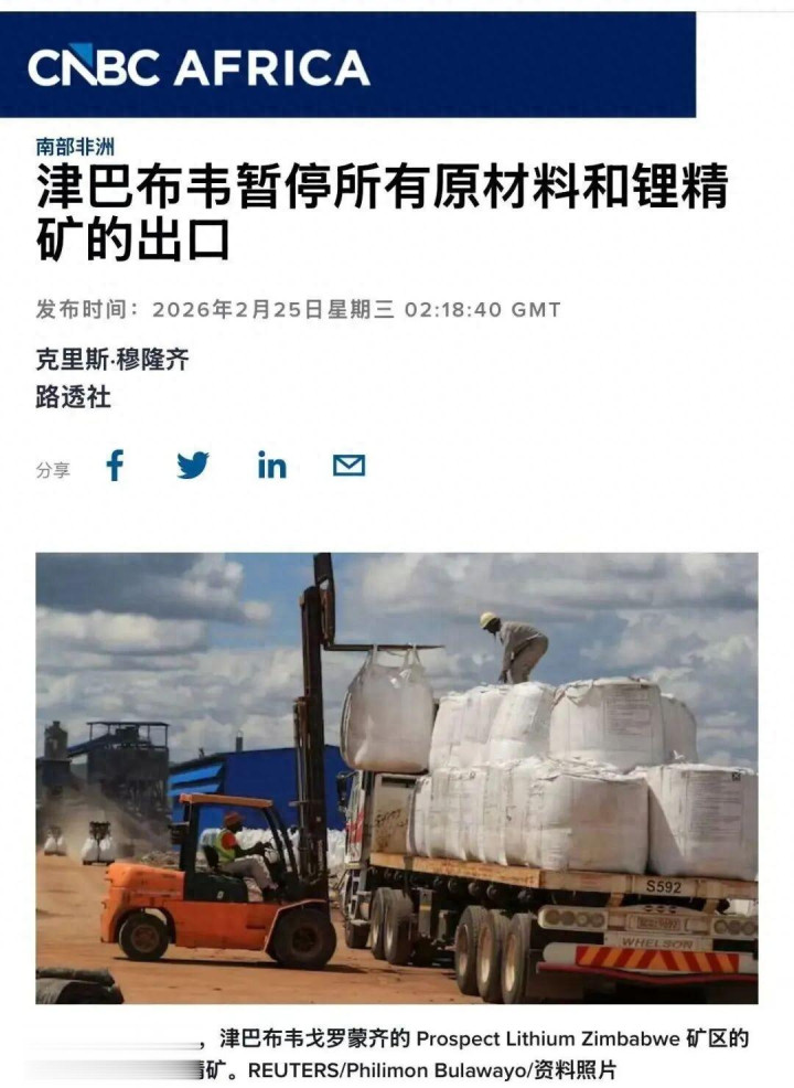 而就在2月25日收盘后,一则来自路透社的音信,更是像在这把火上浇了一桶油——津巴布韦发布“闪电禁令”:立即暂停统共未加工矿物和锂精矿的出口,即刻收效,以致在途的货皆不放过。