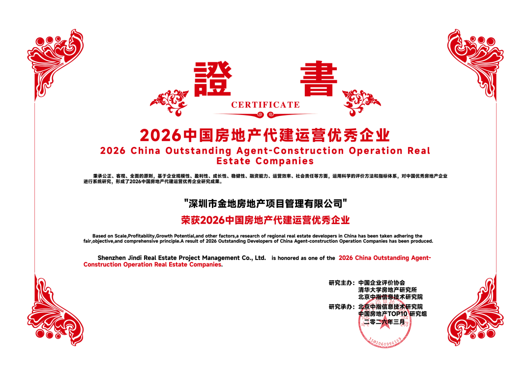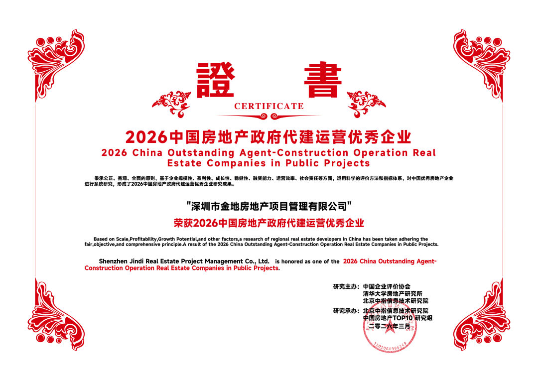 会议发表了2026中国房地产百强企业探讨最新完结,凭借淳朴实力和在代建鸿沟的杰登程达,金地处罚荣获“2026中国房地产代建运营优秀企业”TOP3、“2026中国房地产政府代建运营优秀企业”TOP3。