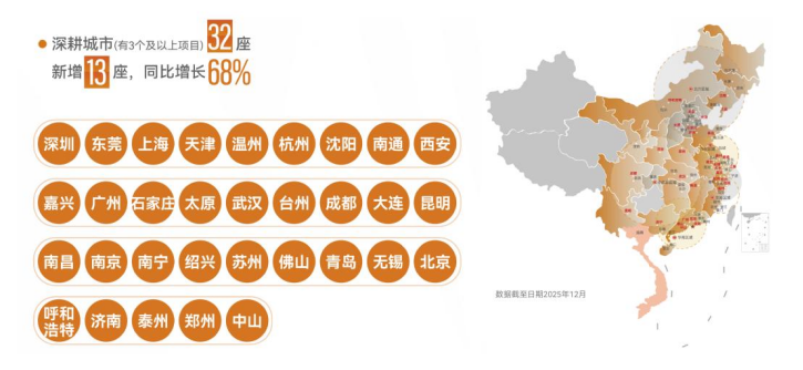 金地处罚聚焦一二线高能级城市和齐市圈,已在32座中枢城市实现深度深耕(领有3个及以上名目),2025年新增济南、郑州、中山等13城,同比增长68%,有用提高了盈利厚实性和风险顽抗才气。