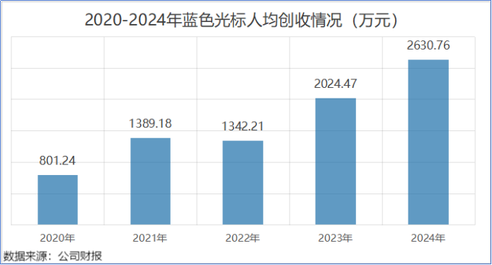 财报数据暴露,公司职工东谈主数从2020年的5058东谈主暴减至2024年的2311东谈主,缩减幅度跳跃一半。同期,公司东谈主均创收从801.24万元增至2630.76万元。