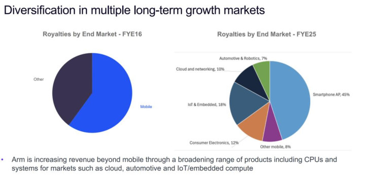 Arm 的中枢板块之前照旧“手机 CPU 架构”,出动端仍然遑急,但不再是独一复旧,很遑急的变化Arm的收入结构正在快速去“单一化”。