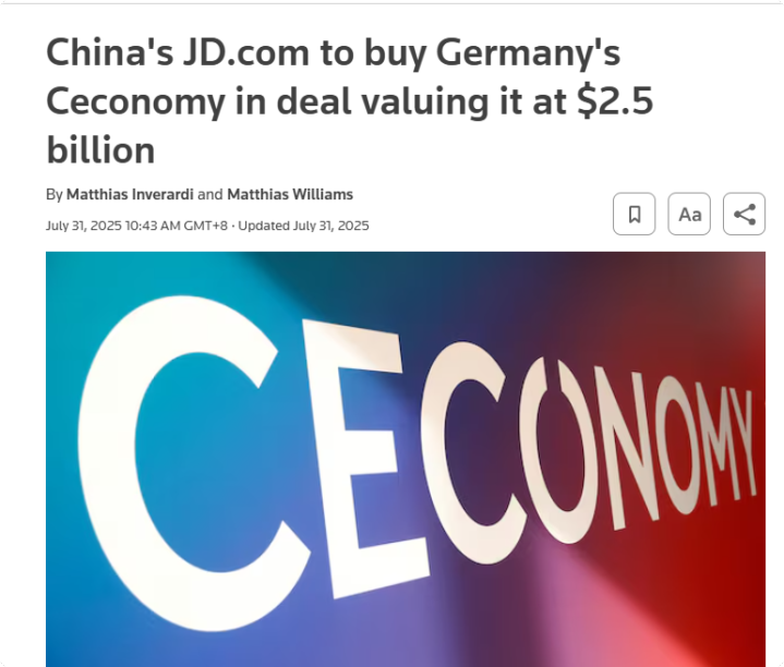 京东布局欧洲的普遍计策,正通过一次要害收购加快落地。公司已将欧洲最初的糜费电子零卖集团Ceconomy(旗下运营MediaMarkt和Saturn两大连锁品牌)锁定为计策收购方针。