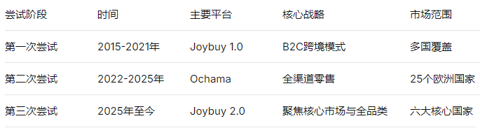 京东的欧洲征途并非一帆风顺。这是京东第三次向欧洲阛阓发起冲击,每一次尝试齐代表着不同的计策想路和阛阓解析。