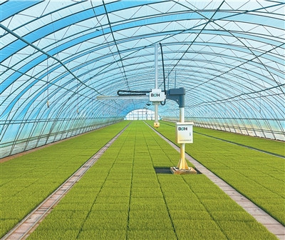 黑龙江北大荒集团友谊农场通过机械功课手臂等先进本事进行智能育秧,提高秧苗品性、缩短坐褥资本。
