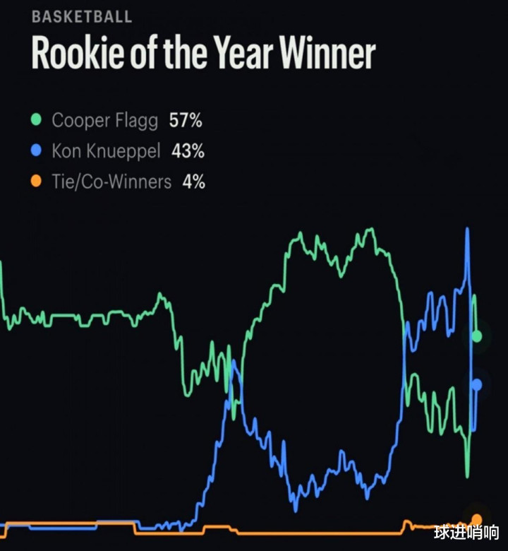 只不外,跟着弗拉格在收官阶段暴走,克努佩尔合手续低迷,在好意思媒瞻望网站给出的最好少壮概率中,弗拉格如故以57%反超克努佩尔的43%。