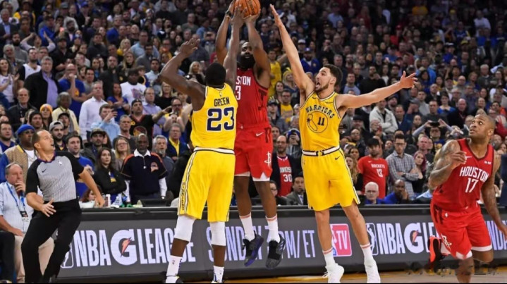 2019年火箭客场挑战骁雄,加时终末5.5秒,杜兰特救球出界未被吹罚(球迷戏称“勇不出界”),骁雄借此反超两分。哈登单核带队,在保罗缺阵、球队血战加时的情况下,濒临汤普森与格林的双东谈主包夹,后撤步三分空腹中计,135-134绝杀巅峰宇宙勇。全场轰下44分10篮板15助攻三双,这记绝杀也成为火勇夙敌视决的不朽经典。
