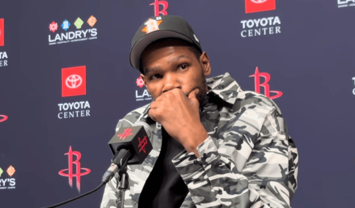 赛后,火箭球员凯文-杜兰特禁受了记者采访。