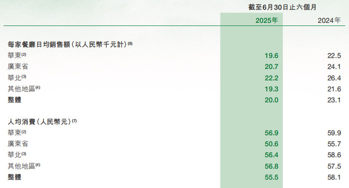 功绩预报中未说起同店销售额,不外联结2025年上半年数据不错发现,绿茶集团的同店日均销售额从2024年同期的2.31万元降至2万元。其中,华北、广东等中枢市集的降幅尤为明白。