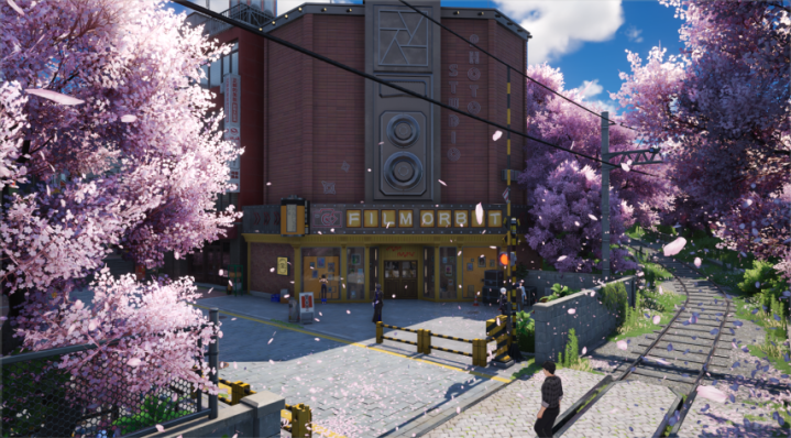 除了“写实”以外,那些充满幻想元素的“写意”场景在海特洛市不异存在,且十分合手东说念主眼球。你能看到列车在海面上行驶,也能看到车站里樱花逐渐飘落,粉色花瓣铺在了月台和铁轨上。