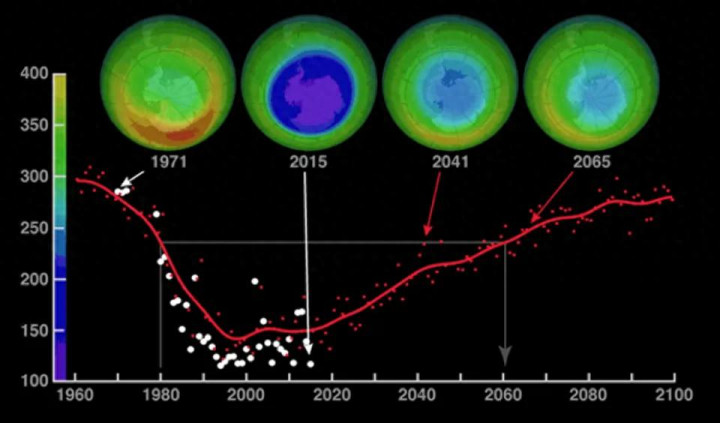 也曾让东谈主忧心忡忡的臭氧层浮泛,正在稳步拔擢,致使如故裁减到了1980年代以来的最小限制。