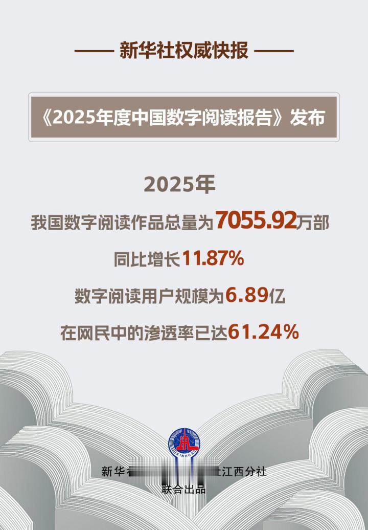 4月20日在江西南昌举办的第五届全民阅读大会发布《2025年度中国数字阅读陈述》。陈述流露,罢休2025年底,我国数字阅读作品总量为7055.92万部,同比增长11.87%,比拟上年有所提高米兰体育官网,米兰标明推行供给仍较为重生。包括翻译、外洋原创、电子书等多种体式的出海作品总量为94.92万部(种),同比增长17.42%。2025年,我国数字阅读用户界限为6.89亿,同比增长2.95%,在网民中的浸透率已达61.24%。
